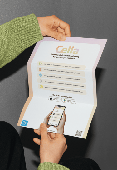 Celia ist eine ganzheitlich konzipierte App, die Menschen mit Zöliakie im Alltag unterstützt und ihnen mehr Sicherheit und Lebensqualität bietet. Die Anwendung vereint Funktionen wie eine Rezeptdatenban, eine Restaurant- und Ärzt*innenkarte, ein Wissensmodul, ein interaktives Symptomtagebuch und eine Community-Plattform.